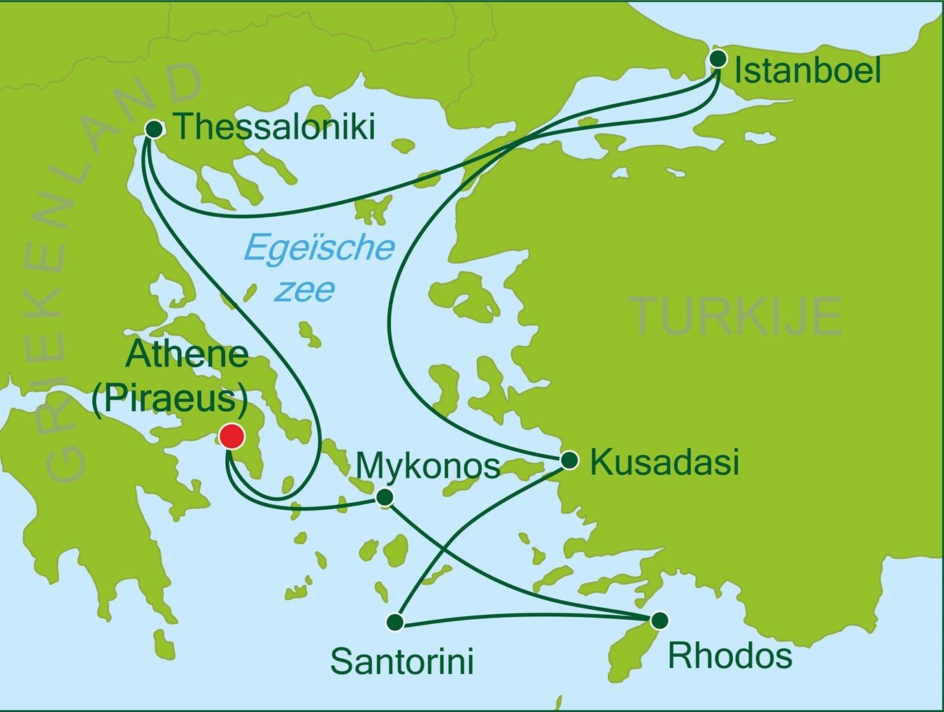 • Extra inbegrepen hotelovernachting in Athene (incl. ontbijt)